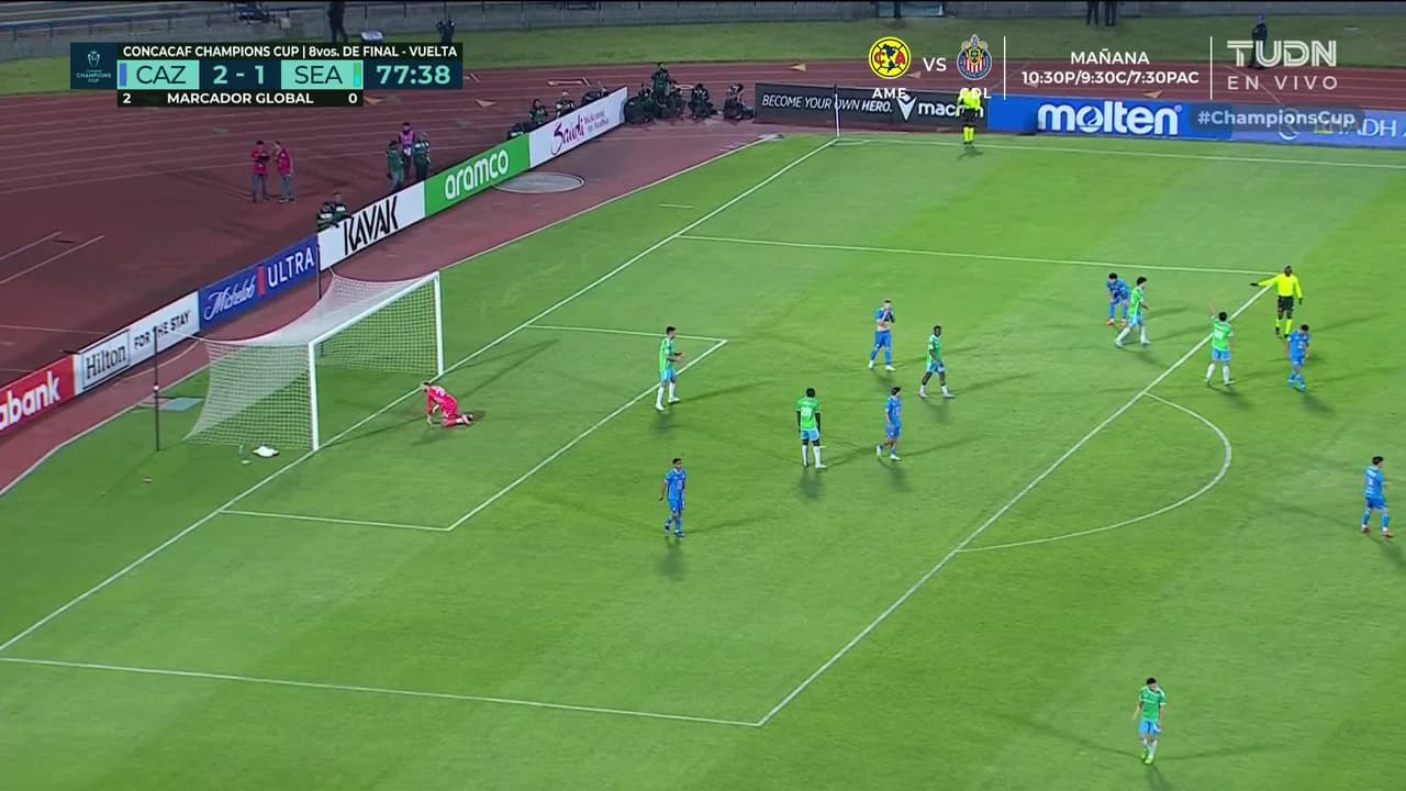 Tiro atajado al ángulo superior derecho. Mateusz Bogusz (Cruz Azul) Disparo con la derecha desde el centro del área. Asistencia de Carlos Rodríguez.