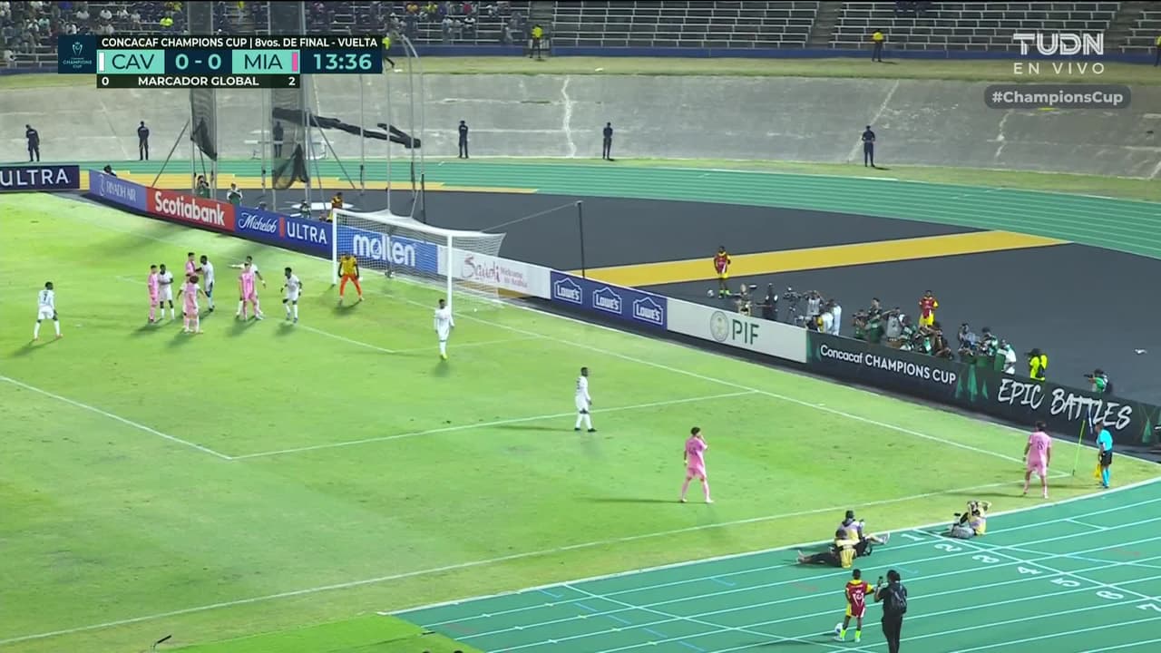 Tiro atajado. Maximiliano Falcón (Inter Miami CF) disparo de cabeza desde el lado izquierdo dentro del área.