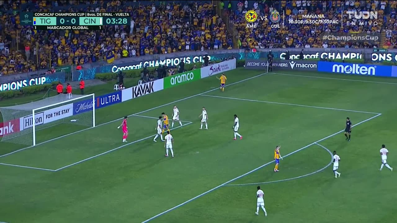 Tiro atajado raso al centro del arco. Nicolás Ibáñez (Tigres) Disparo con la derecha desde fuera del área.