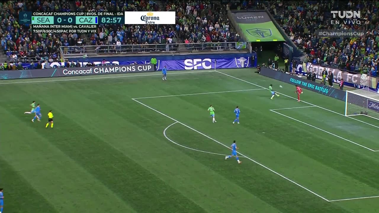 Tiro atajado. Obed Vargas (Seattle Sounders FC) Disparo con la derecha desde fuera del área.