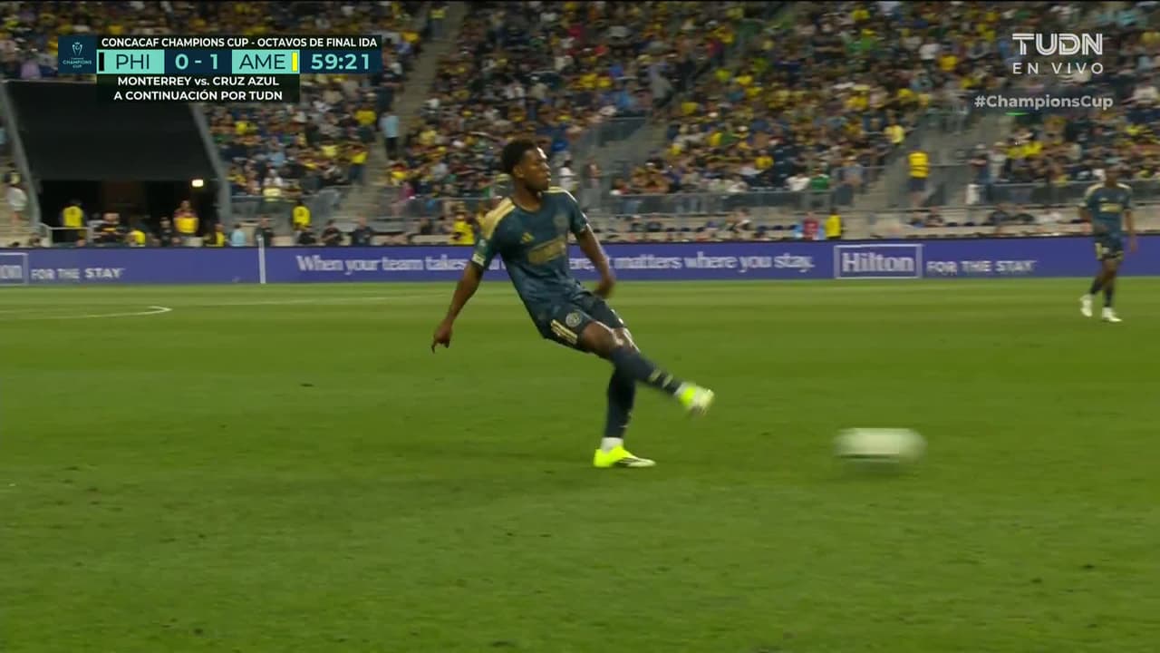 Tiro atajado. Raphael Veiga (América) zurdazo desde el centro del área.