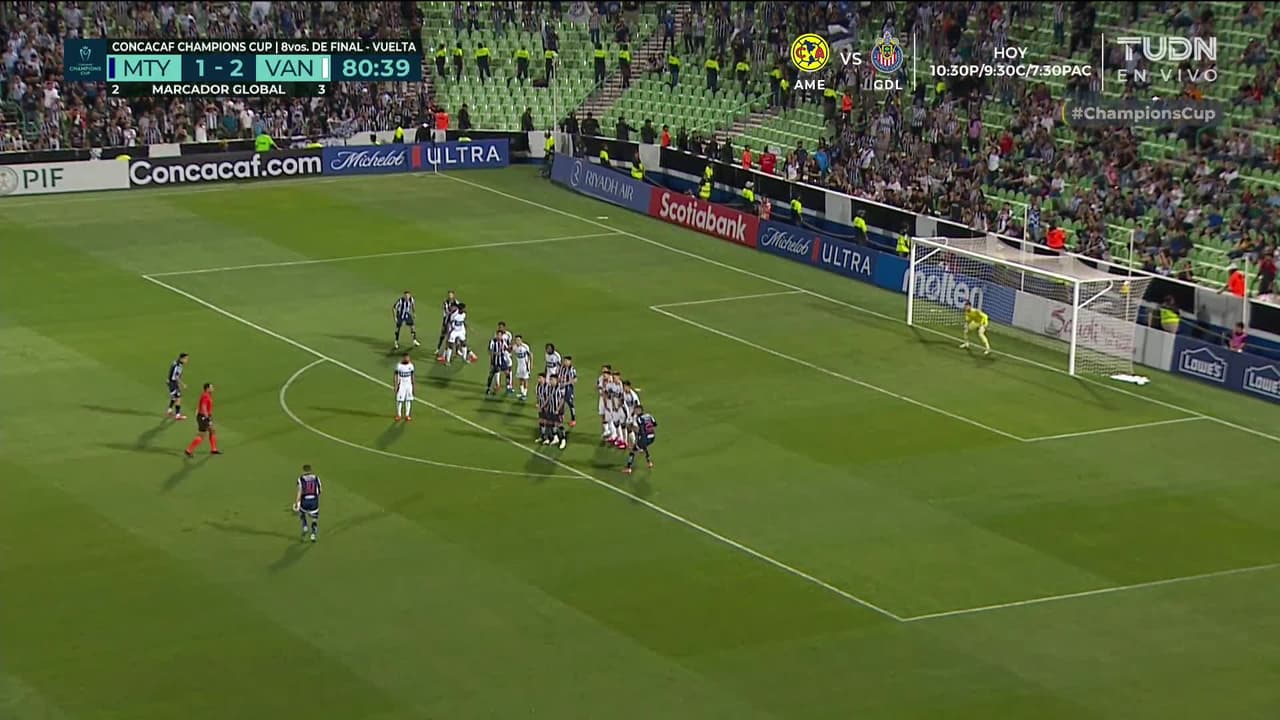 Tiro atajado. Sergio Canales (Monterrey) zurdazo desde fuera del área.