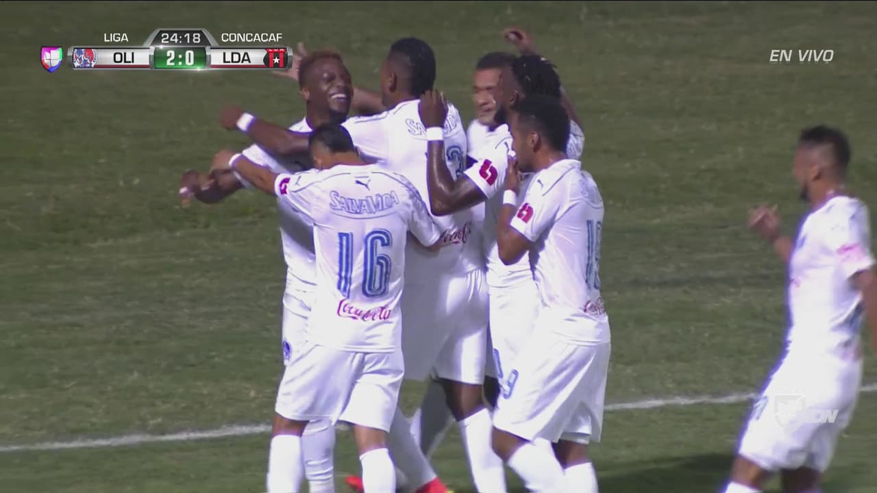 A los dos minutos de juego el delantero Carlo Costly puso el primero para el Olimpia con un disparo potente y con movimiento que fue imposible de atajar para el portero Luis Miguel Valle.