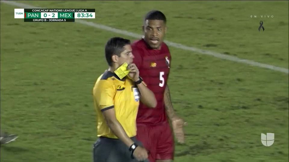 Tarjeta amarilla. El árbitro amonesta a Anibal Mello de Panama