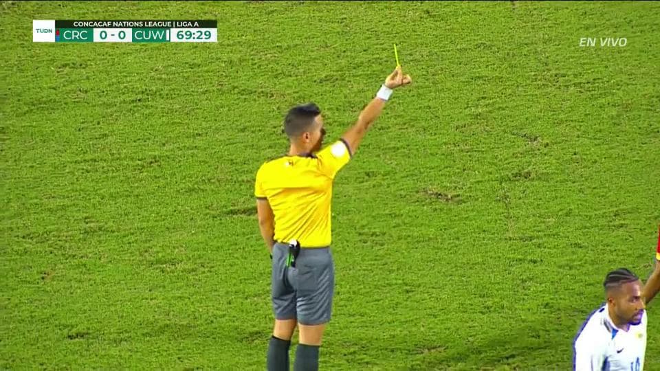 Tarjeta amarilla. El árbitro amonesta a Celso Borges de Costa Rica on October 13, 2019
