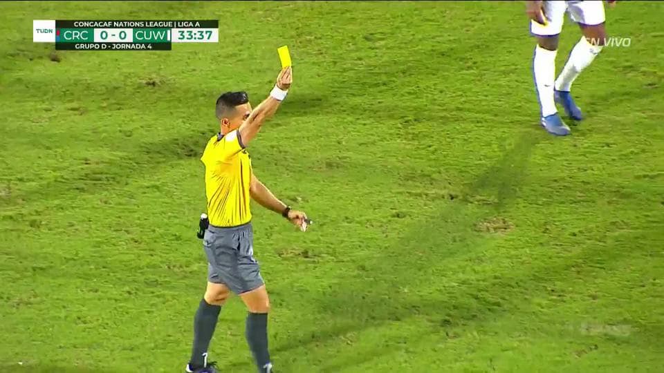 Tarjeta amarilla. El árbitro amonesta a Gevaro Nepomuceno de Curaçao on October 13, 2019