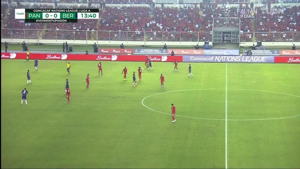 Tarjeta amarilla. El árbitro amonesta a Jalen Harvey de Bermuda
