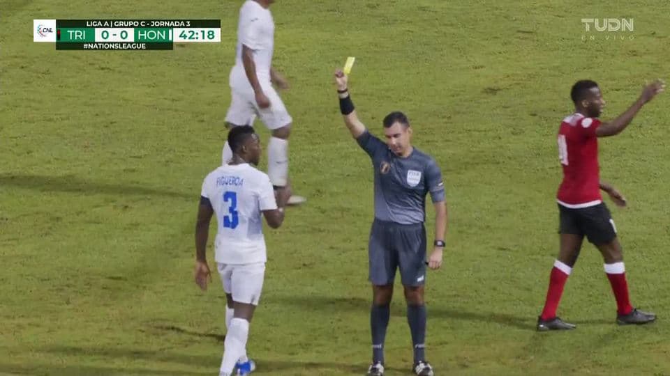 Tarjeta amarilla. El árbitro amonesta a Maynor Figueroa de Honduras on October 10, 2019