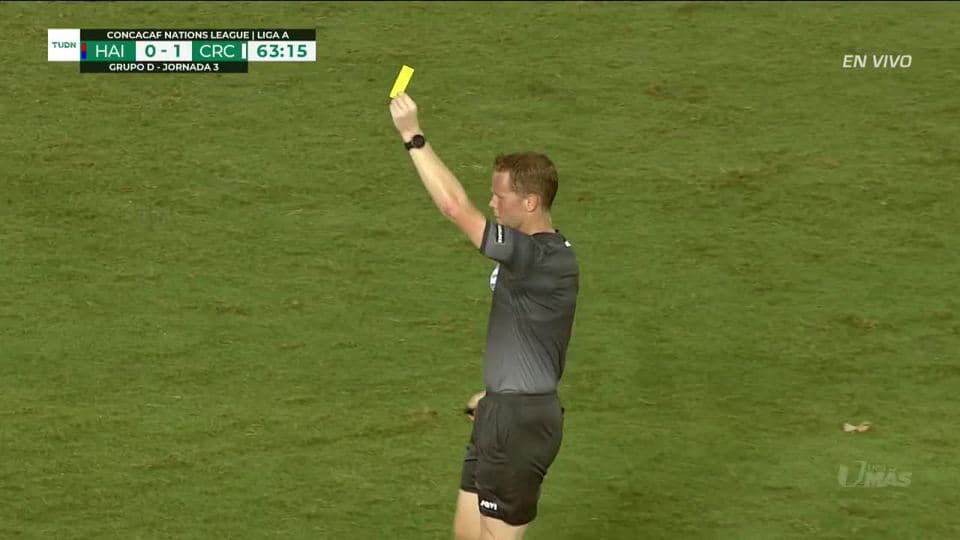 Tarjeta amarilla. El árbitro amonesta a Ricardo Blanco de Costa Rica on October 10, 2019