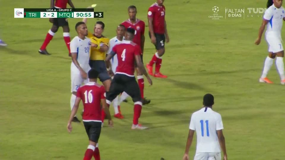 Tarjeta amarilla. El árbitro amonesta a Stephane Abaul de Martinique on September 9, 2019