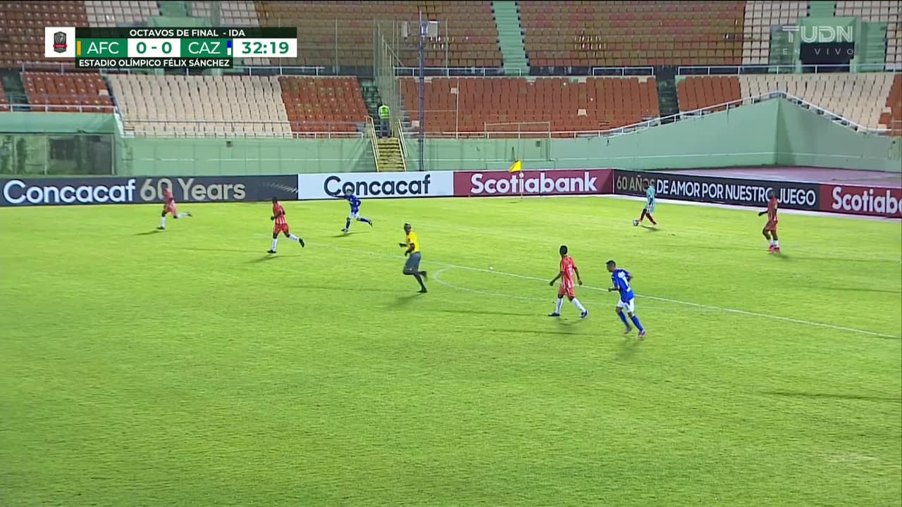 Walter Montoya (Cruz Azul) remata palo| Disparo con la derecha desde fuera del área.