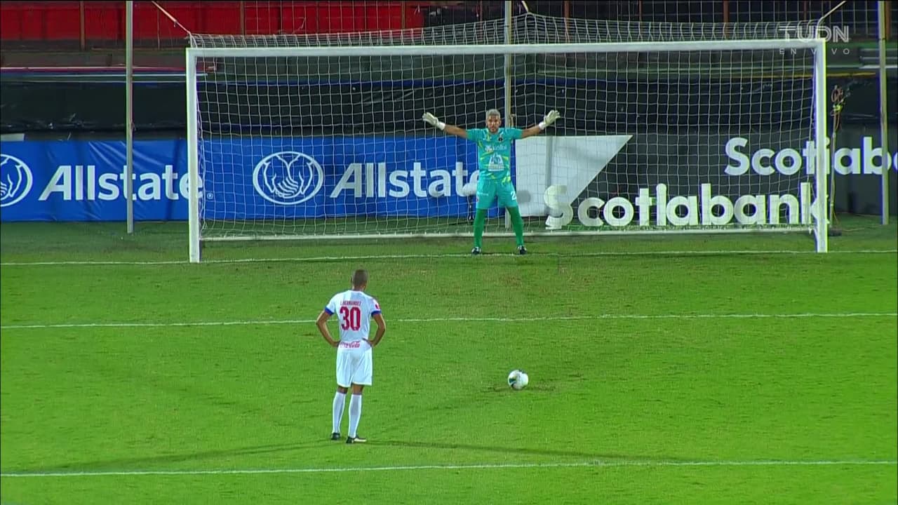 ¡Gol! Alajuelense 0(2)| Club Deportivo Olimpia 0(2). Yurguin Román (Alajuelense) convirtió el penalti zurdazo al centro de la portería.