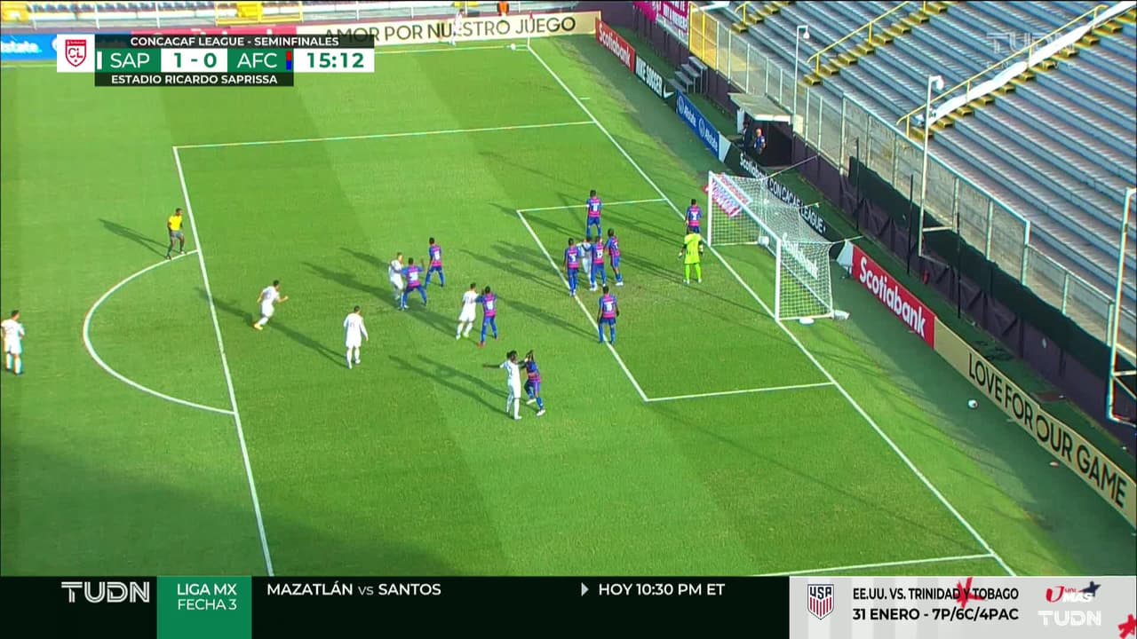 ¡Gol! Saprissa 1| Arcahaie 0. Esteban Espíndola (Saprissa) disparo de cabeza desde el centro del área al centro de la portería. Asistencia de Michael Barrantes.