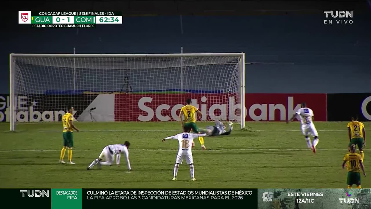 ¡Gol! Guastatoya 0| Comunicaciones 1. Andrés Lezcano (Comunicaciones) disparo de cabeza desde el centro del área al centro de la portería. Asistencia de Steve Robles.