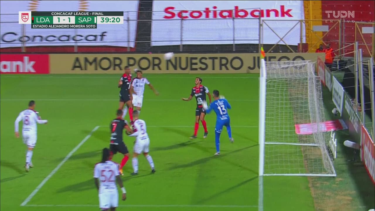 El delantero de los Liguistas falló debajo del arco del Saprissa un potente cabezazo al 38’.