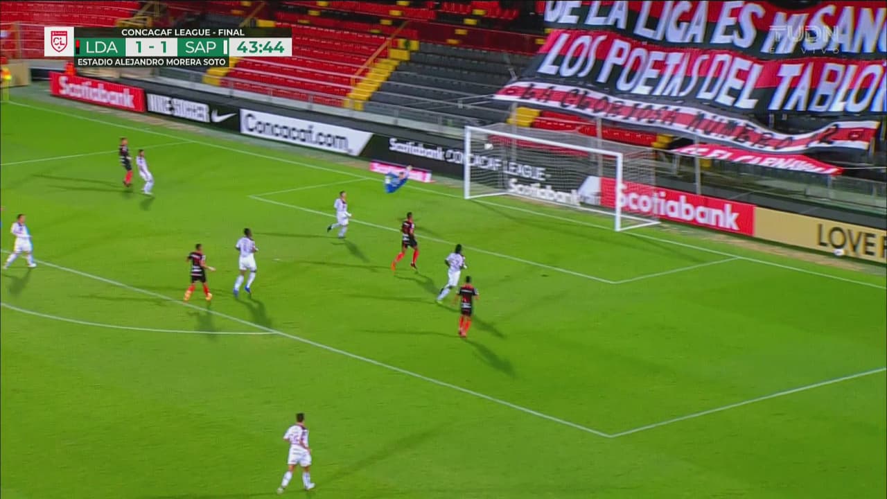 El delantero del Alajuelense se inventó una magnífica definición que pasó muy cerca del arco del Saprissa.