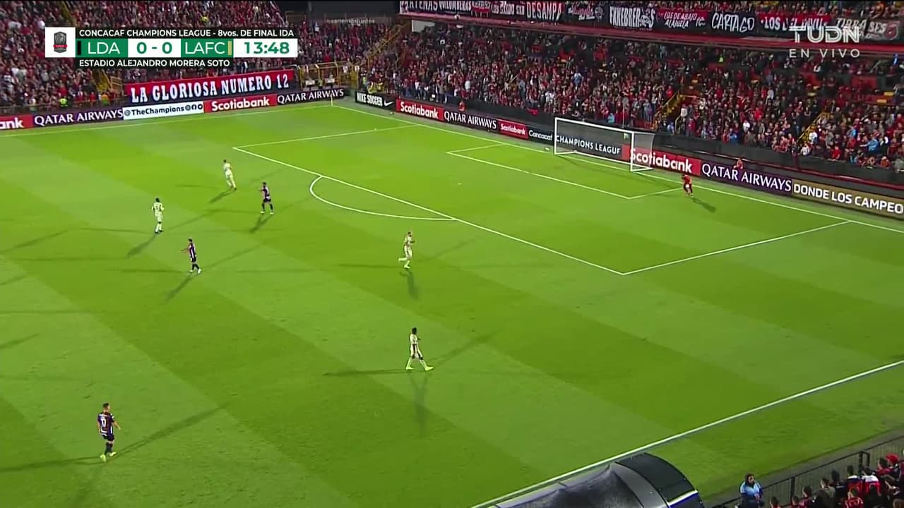 Tiro atajado. Dénis Bouanga (Los Angeles Football Club) Disparo con la derecha desde fuera del área.