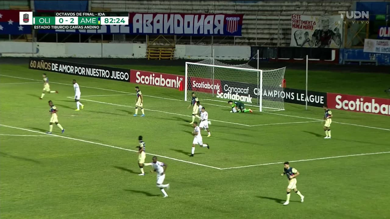 Tiro atajado junto al lado derecho de la portería. Josman Figueroa (Club Deportivo Olimpia) zurdazo desde el centro del área. Asistencia de José Pinto con un centro al área.