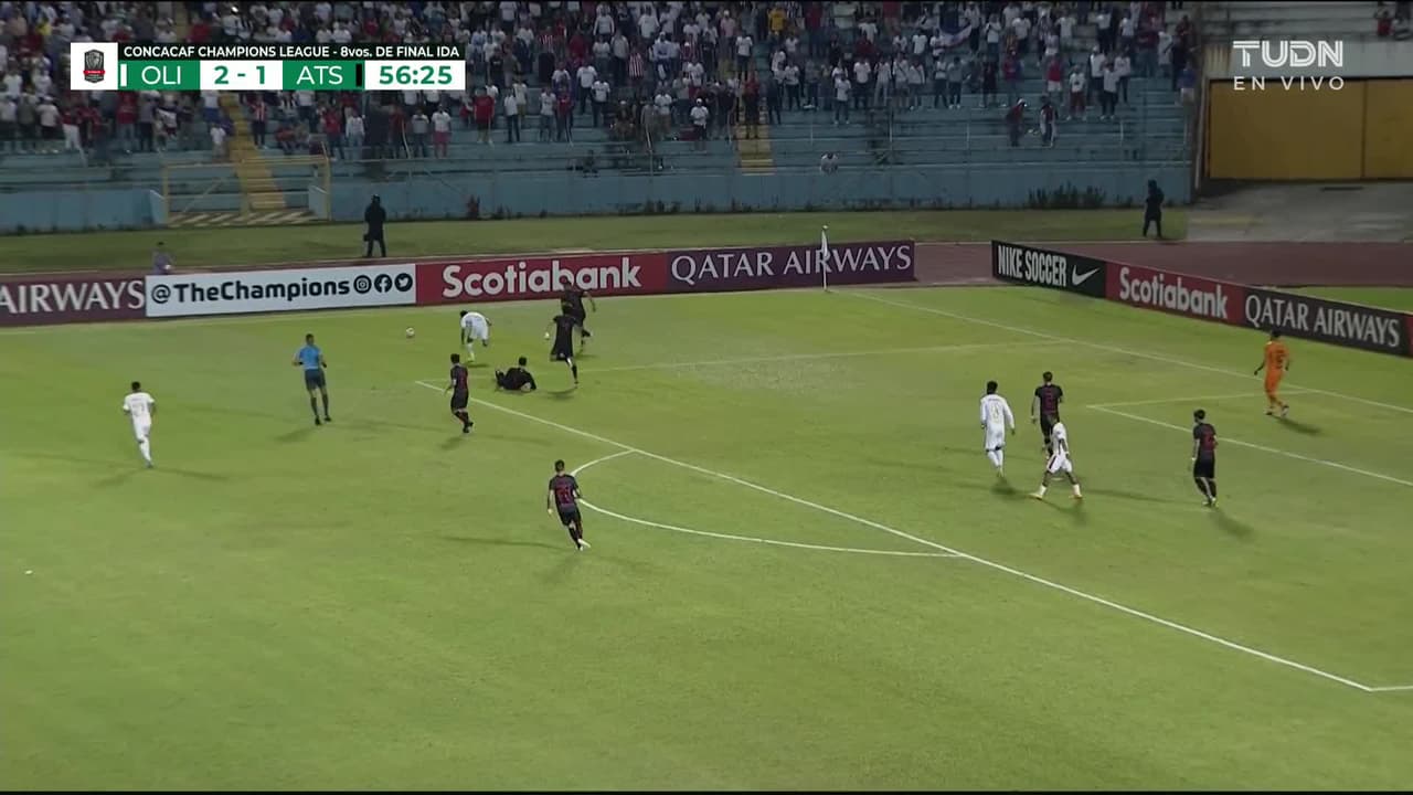 Tiro atajado Por arriba en el centro del arco. Kevin López (Club Deportivo Olimpia) Disparo con la derecha desde el centro del área. Asistencia de Jorge Álvarez pase largo.