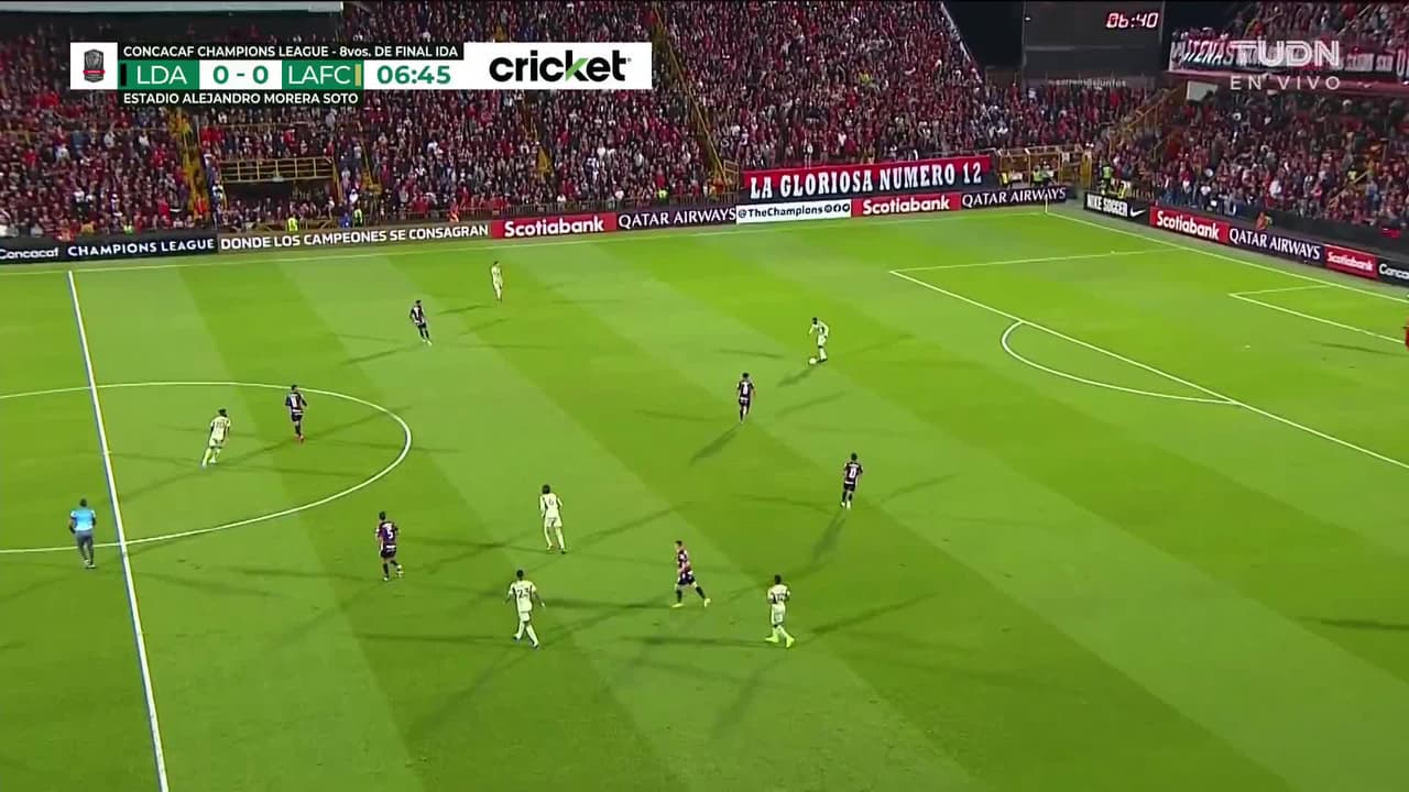 Tiro atajado. Kwadwo Opoku (Los Angeles Football Club) zurdazo desde el lado derecho dentro del área.
