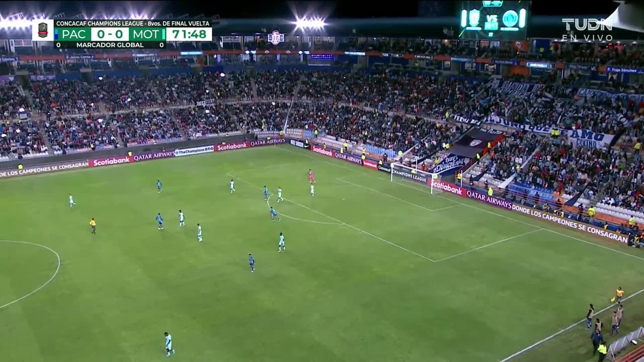 Tiro atajado por abajo a la izquierda. Luis Chávez (Pachuca) zurdazo desde el centro del área. Asistencia de Mauricio Isais.