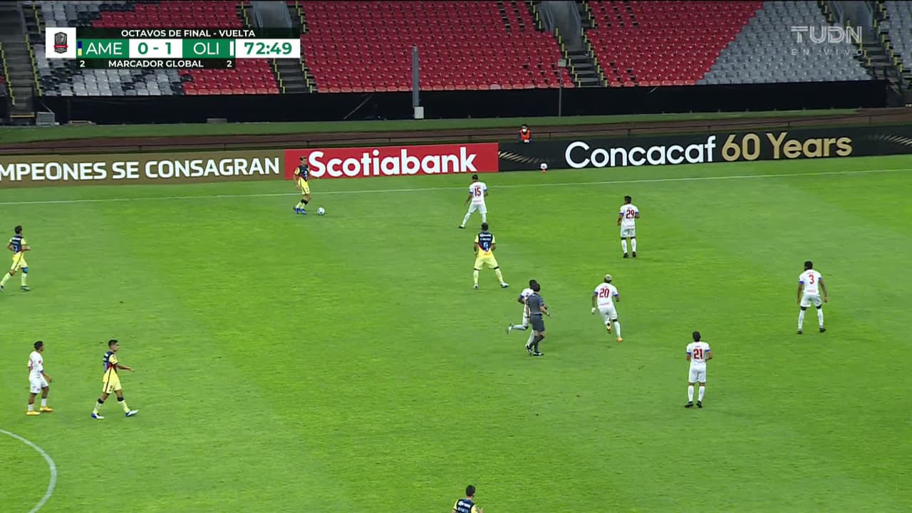 Tiro atajado por abajo a la izquierda. Roger Martínez (América) disparo de cabeza desde el centro del área. Asistencia de Nicolás Benedetti con un centro al área.