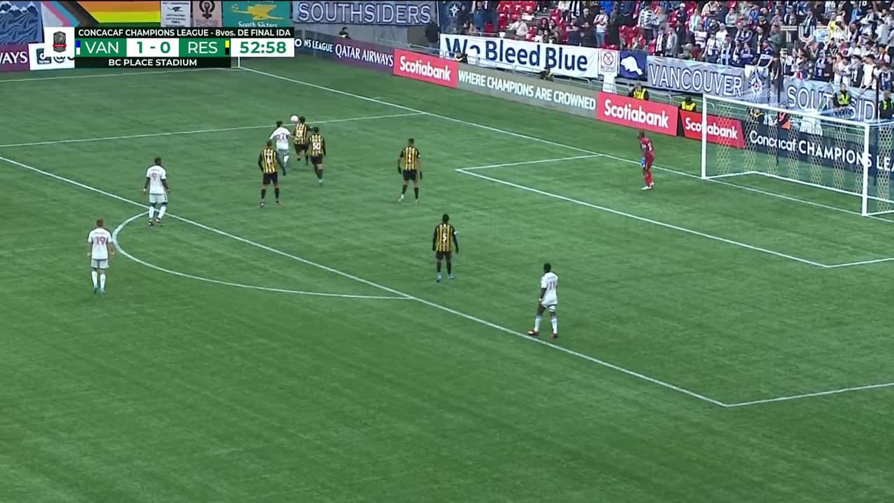 Tiro atajado Por arriba en el centro del arco. Sergio Córdova (Vancouver Whitecaps) zurdazo desde el centro del área.