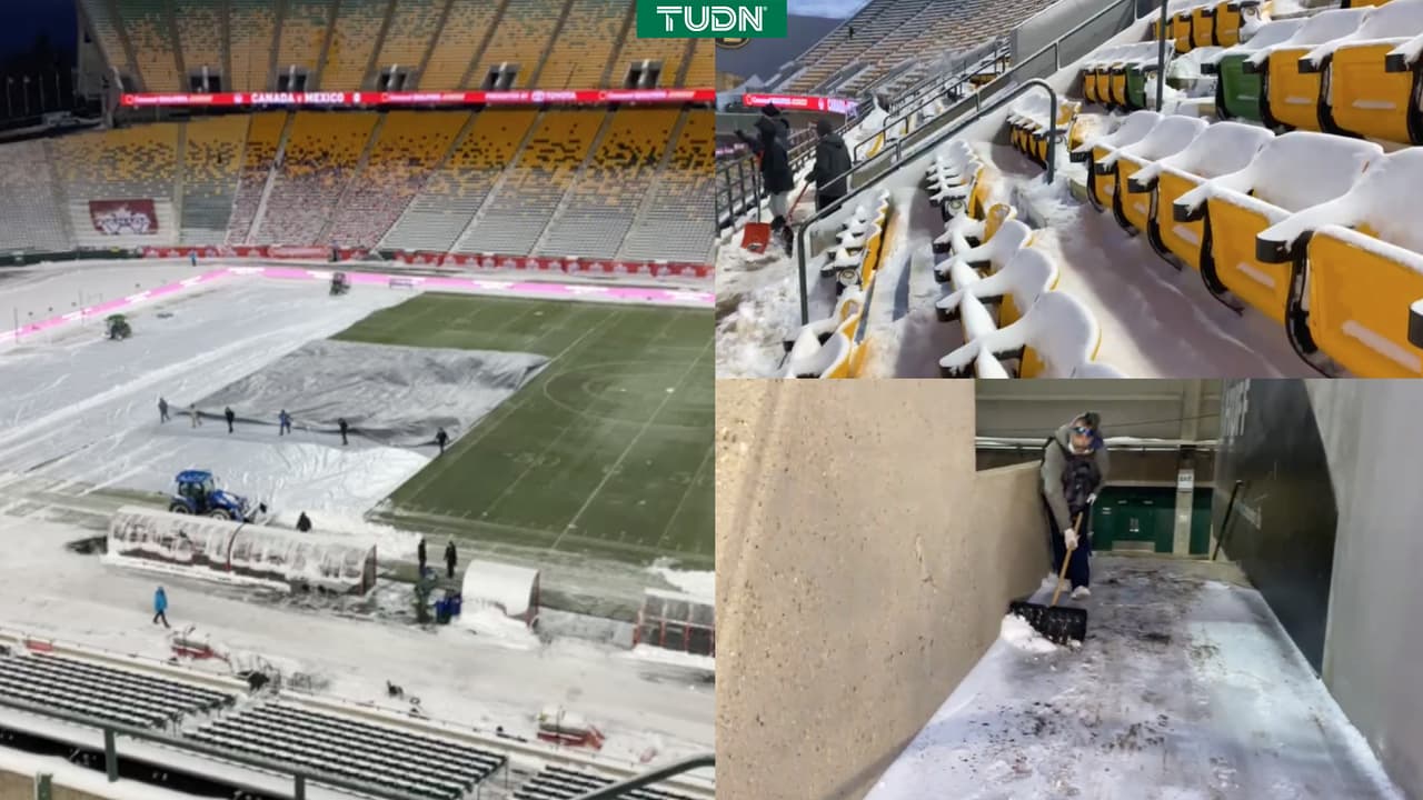 A PESAR DE LA INTENSA NEVADA EN EDMONTON, LA CANCHA PARA EL JUEGO DE ESTA NOCHE LUCE EN PERFECTAS CONDICIONES
