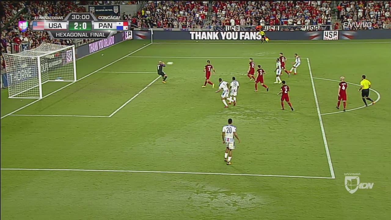 A los 15", nuevamente el ‘Chico Maravilla’ desborda por la izquierda, regatea, levanta la cara y centra para que Jozy Altidore quedara solo para empujarla y colocar 2-0 para la selección de las Barras y las Estrellas.