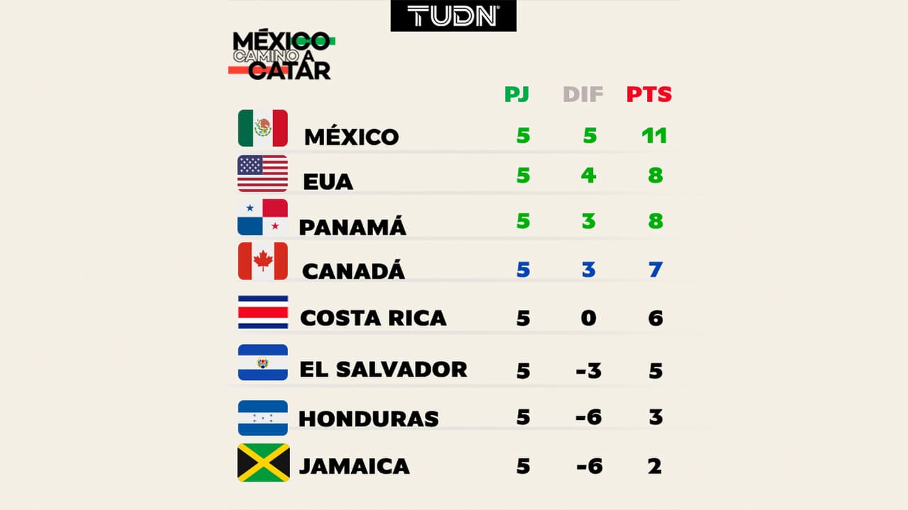 Finalizó la quinta fecha de las eliminatorias de Concacaf a la Copa del Mundo Qatar 2022 y México domina la tabla al ubicarse en primer lugar y mantener el invicto.