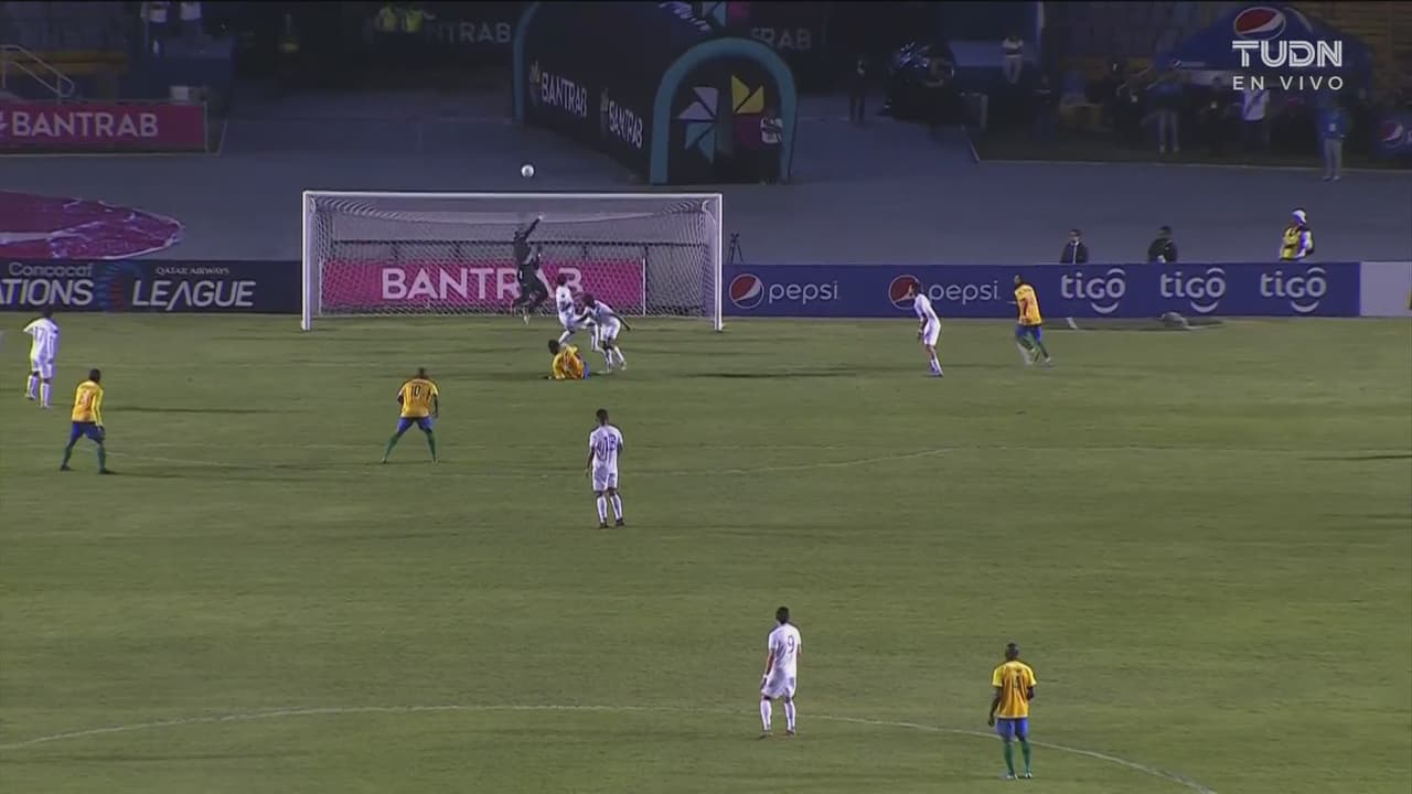 El delantero de Guayana alcanzó a rematar ante la marca de dos zagueros, pero el portero pudo desviar.
