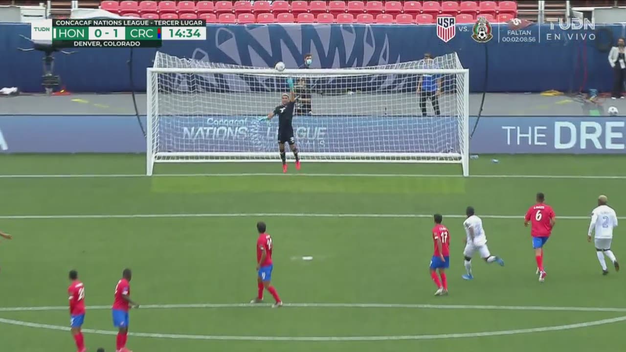 El mediocampista de Honduras prendió el esférico y su cobro se fue por encima del arco al 14’.