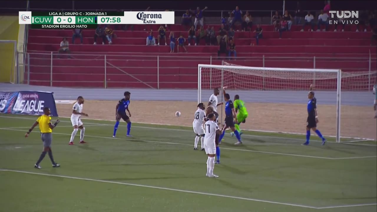 Ataque de peligro de Curazao por la banda que termina con tiro desviado de su delantero al 8’.