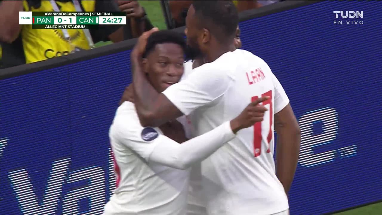 ¡Gooooool! Panamá 0, Canada 1. Jonathan David (Canada) remate con la izquierda desde el centro del área al centro de la portería. Asistencia de Kamal Miller después de un pase en profundidad.