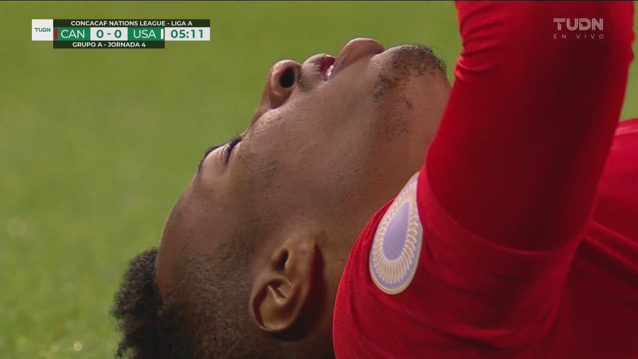 El volante de Canadá sintió el jalón y se tiró al suelo durante el juego de Nations League ante Estados Unidos.