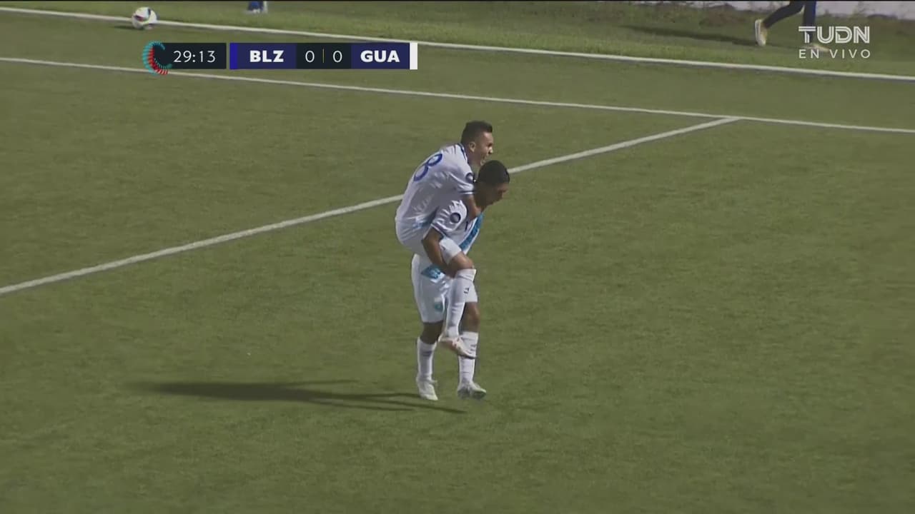 El atacante de Guatemala la conecta en el segundo poste para mover las redes con su cabezazo.