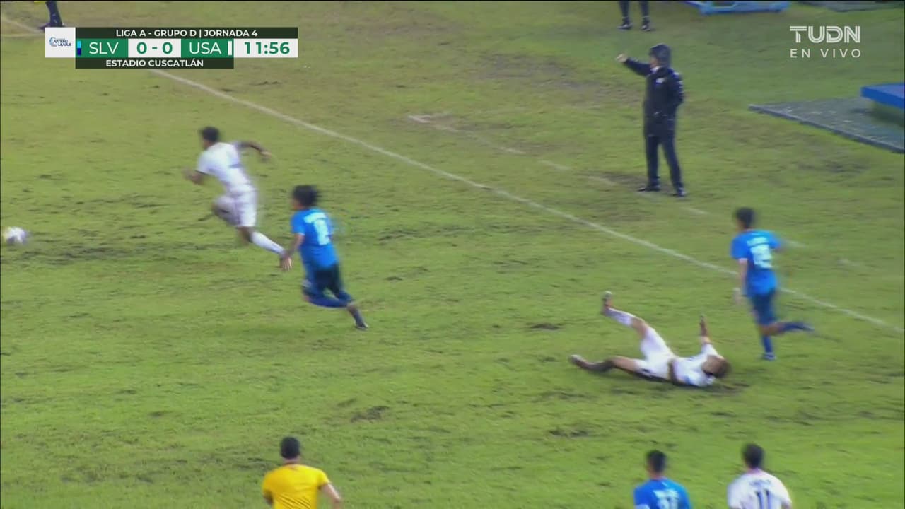 El zaguero de El Salvador le deja un recuerdito al ‘10’ de Team USA que lo mandó al pasto al 12’.