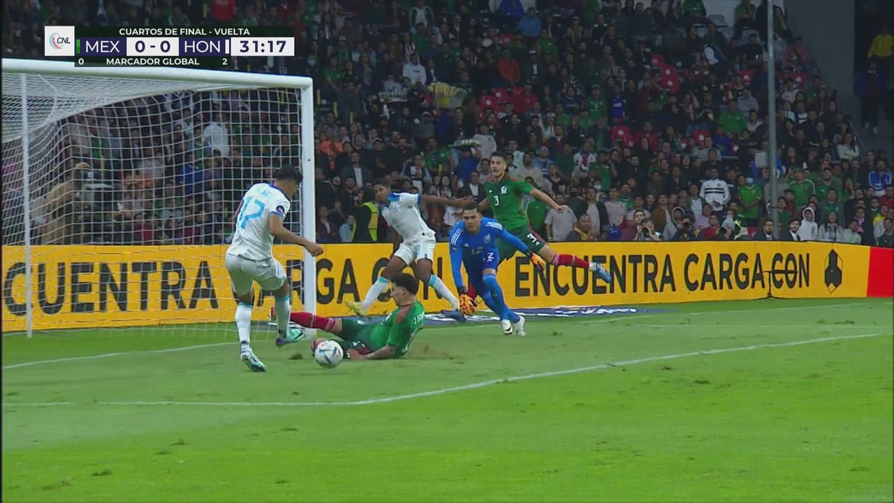 Honduras respondió y provocó un atajadón de Malagón. El portero del Tri rechazó de forma espectacular tras un remate de cabeza del ‘Choco’ Lozano que provocó un micro infarto a los 70 mil aficionados que colmaron el Estadio Azteca.