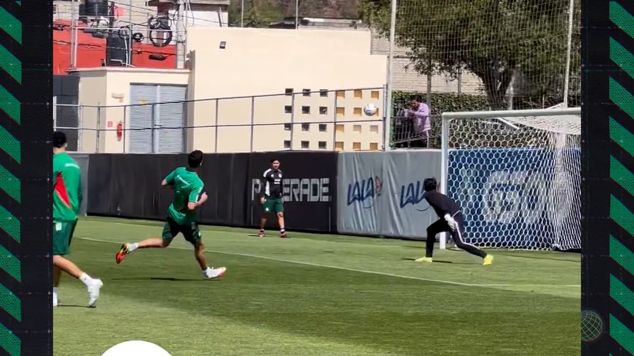 En el entrenamiento de este jueves y en la víspera del Surinam vs. México, Jiménez se mandó un golazo de tres dedos al ángulo.
