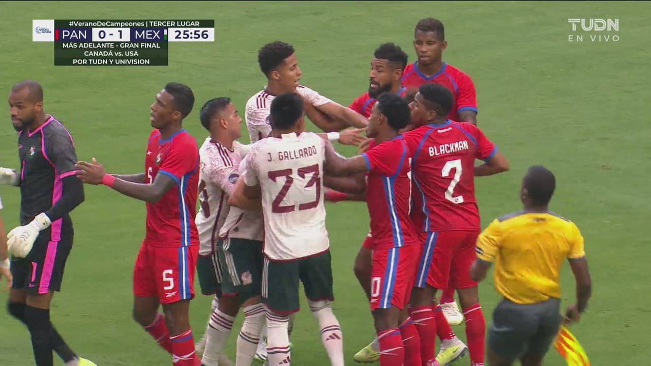 Casi a la media hora de juego se desató un conato de bronca entre mexicanos y panameños luego de un duro choque entre Romo y Cummings que cerca estuvo de costarle la roja al contención del Tri, pero aunque el VAR la revisó, decretó que no debía ser más allá de la amarilla.