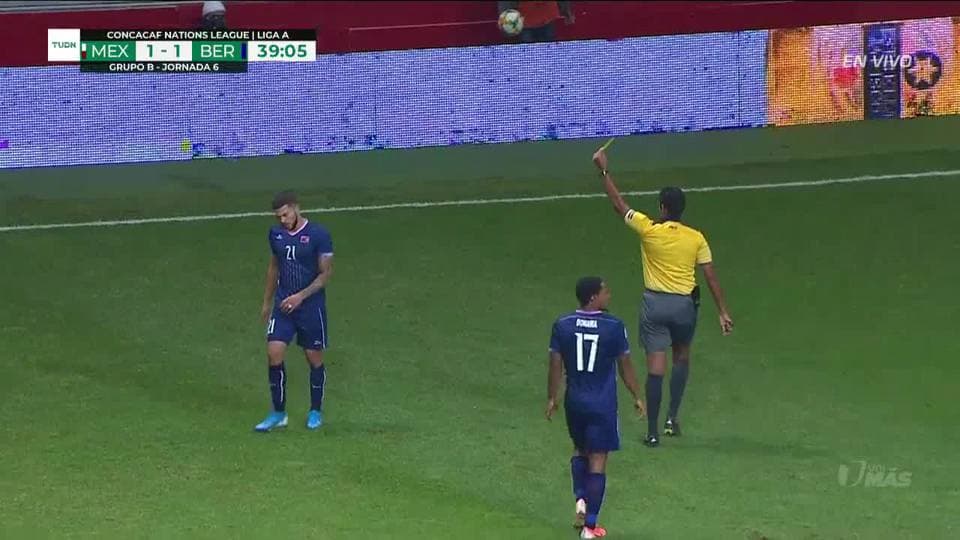 Tarjeta amarilla. El árbitro amonesta a Nahki Wells de Bermuda