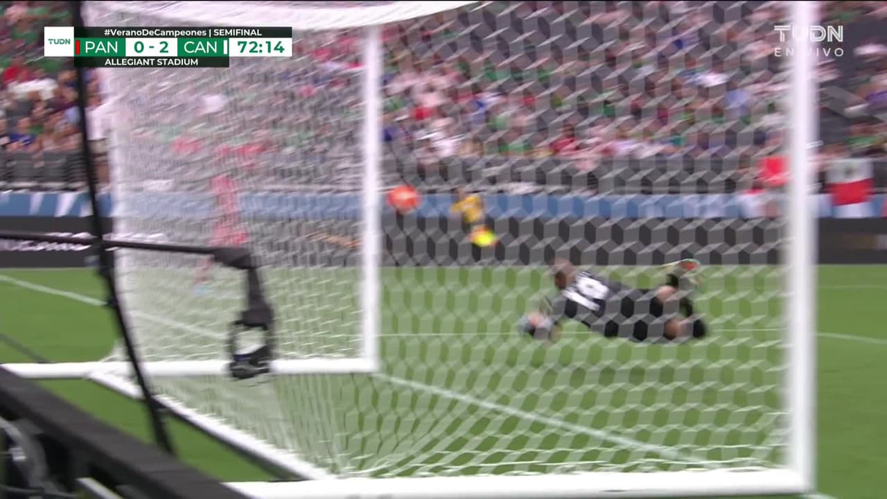 Remate parado junto al lado derecho de la portería. Adalberto Carrasquilla (Panamá) remate con la derecha desde fuera del área.