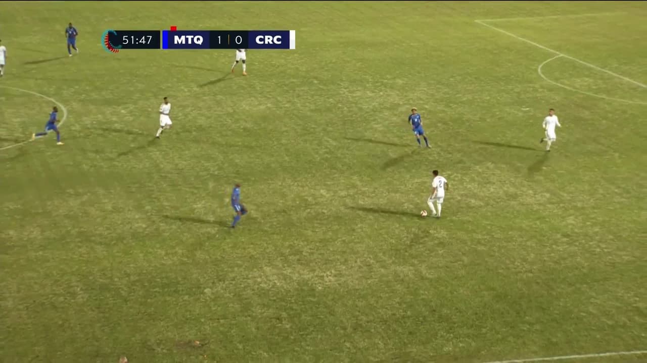 Remate parado bajo palos a rás de suelo. Alonso Martínez (Costa Rica) remate con la izquierda desde el centro del área. Asistencia de Joel Campbell.