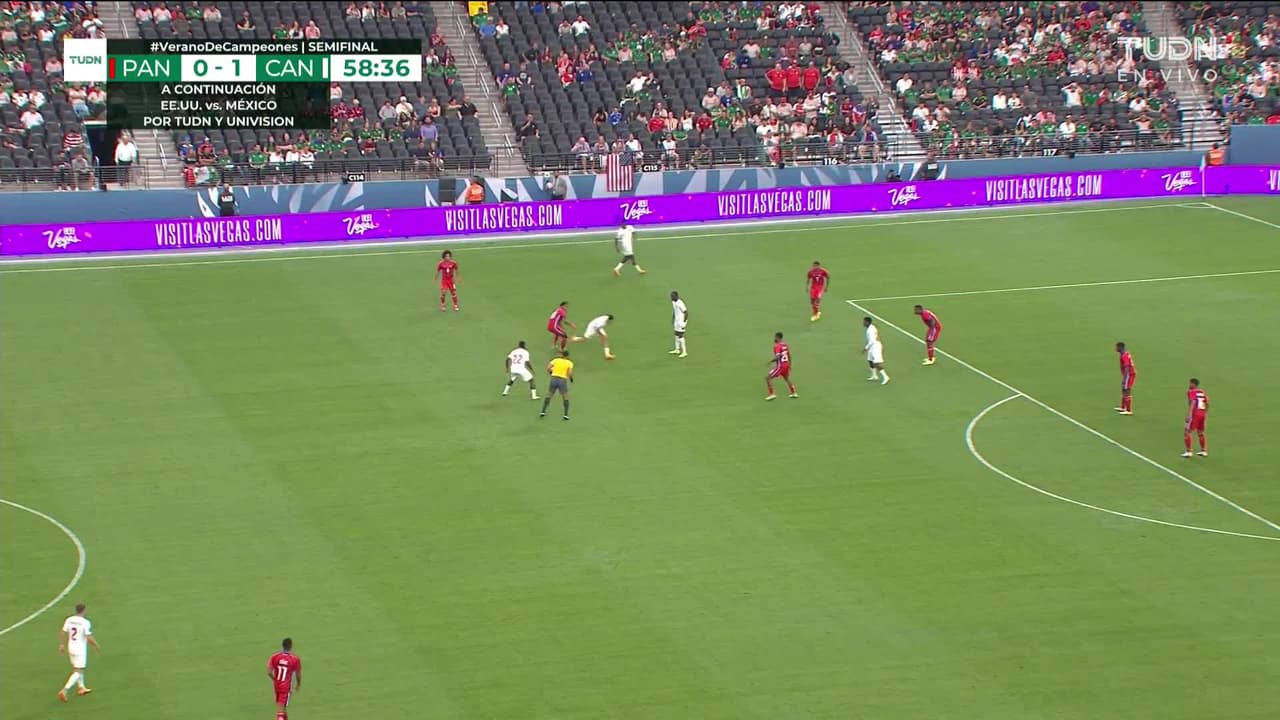Remate parado bajo palos a rás de suelo. Cyle Larin (Canada) remate de cabeza desde muy cerca. Asistencia de Tajon Buchanan con un centro al área.