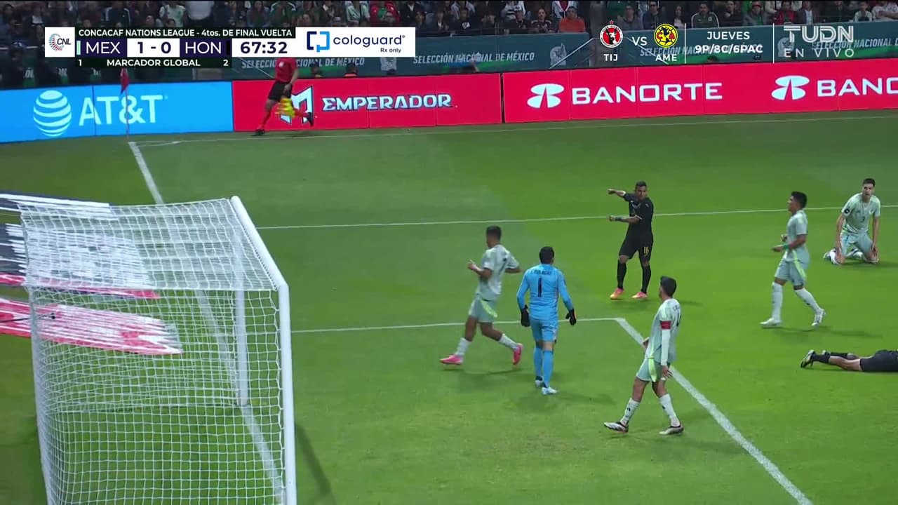 Remate parado bajo palos a rás de suelo. Edwin Rodríguez (Honduras) remate con la derecha desde fuera del área. Asistencia de Jorge Álvarez.