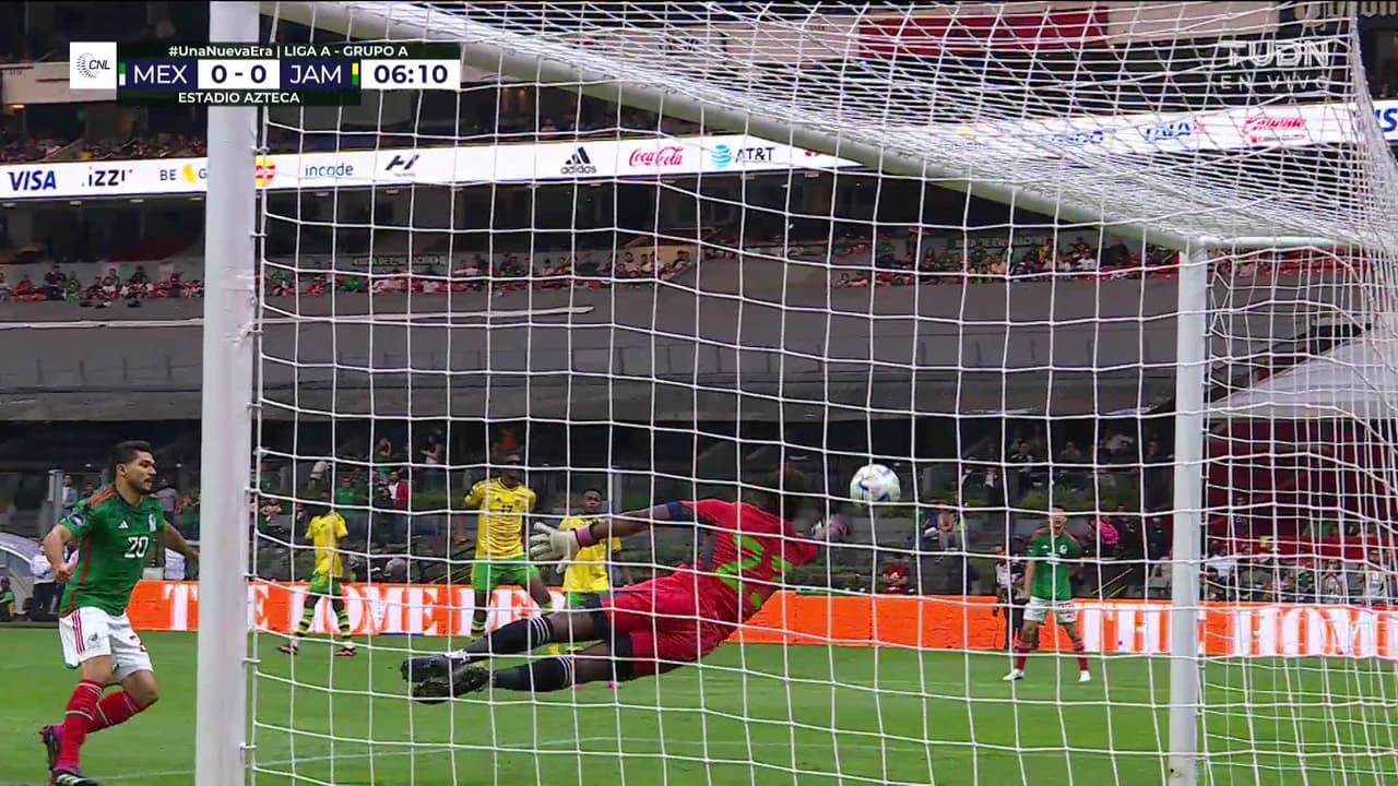 Remate parado a la escuadra izquierda. Héctor Moreno (México) remate de cabeza desde el centro del área. Asistencia de Hirving Lozano con un centro al área.