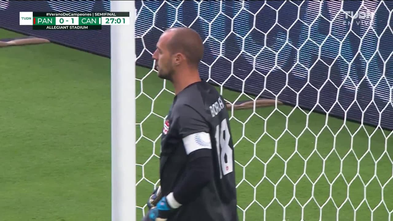 Remate parado alto y por el centro de la portería. Ismael Díaz (Panamá) remate con la derecha desde fuera del área. Asistencia de César Blackman.