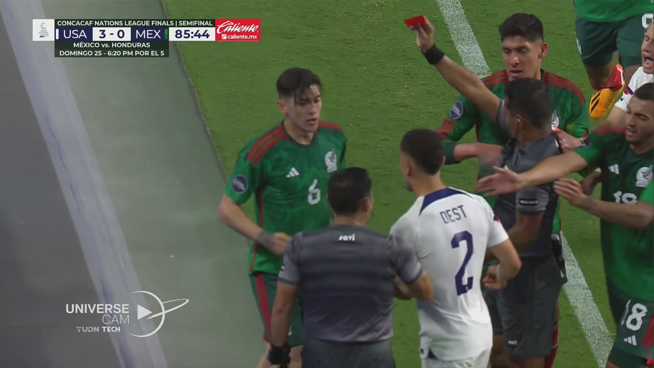 El árbitro determinó que los dos se fueran expulsados por conducta violenta en el campo, mientras que Jorge Sánchez nuevamente se fue a buscar bronca con los jugadores de Estados Unidos, en una clara muestra de frustración por parte del elemento mexicano.
