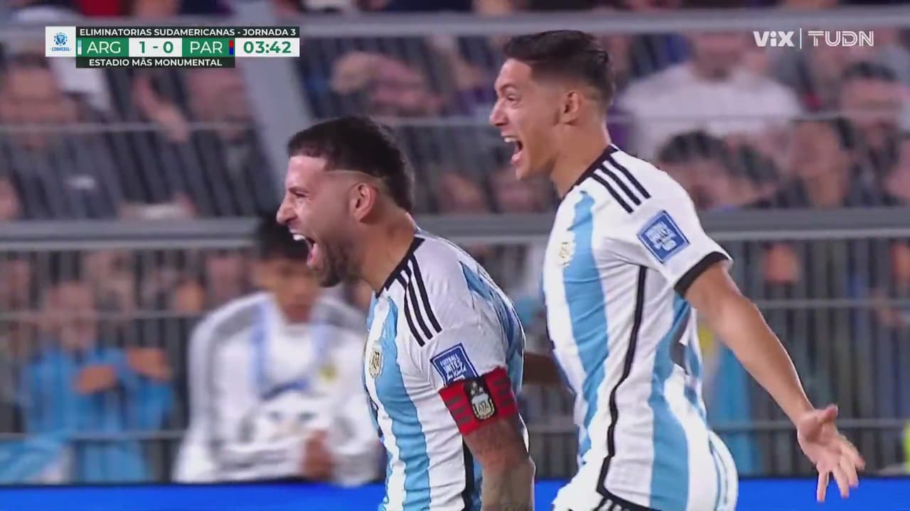 La Albiceleste se puso rápido en el marcador en el Estadio Monumental de Núñez en Buenos Aires con un golazo de Nicolás Otamendi de volea, cuando apenas corría el minuto 3 de partido.