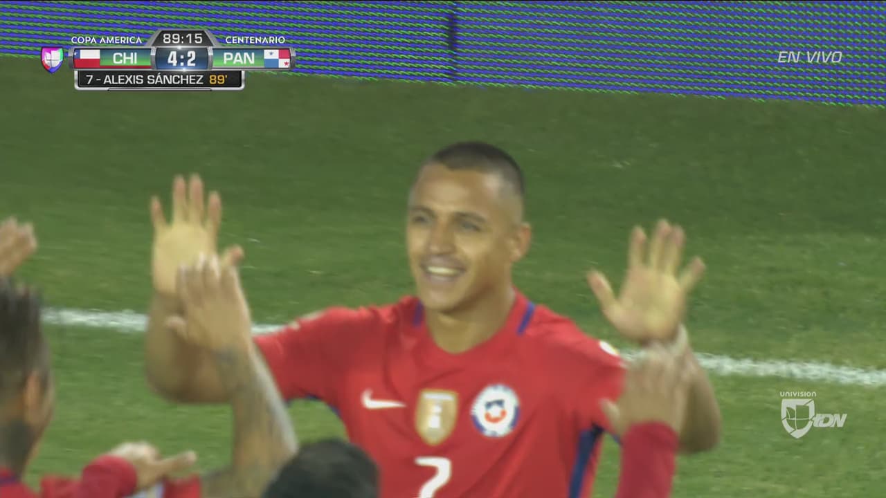 Cuarto gol de Chile y segundo de Alexis Sánchez para tomar ventaja de 4-2 sobre Panamá en la Copa América Centenario.